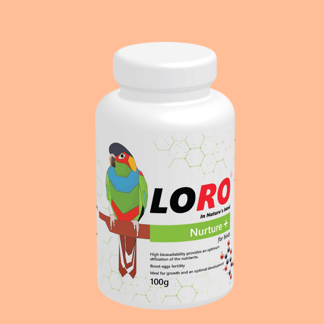 Loro Nurture+ is a premium vitamin supplement specially formulated to support the overall health, vitality, and performance of all bird species. Enriched with essential vitamins and nutrients, it helps boost immunity, improve energy levels, and promote brilliant feather shine.